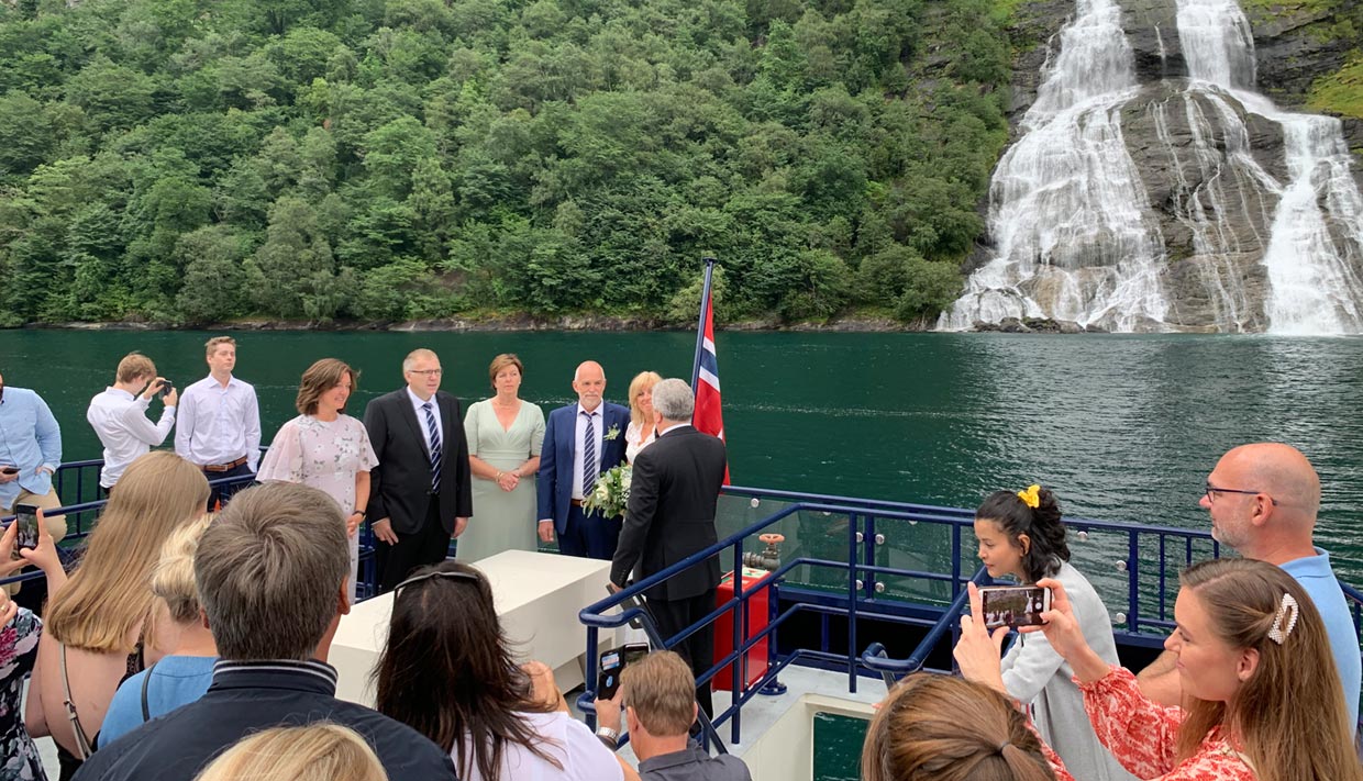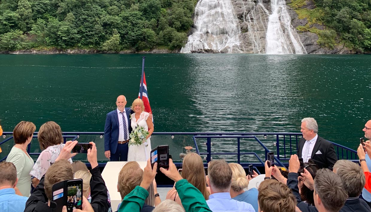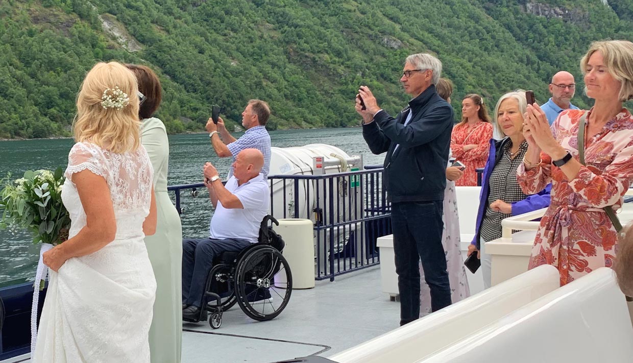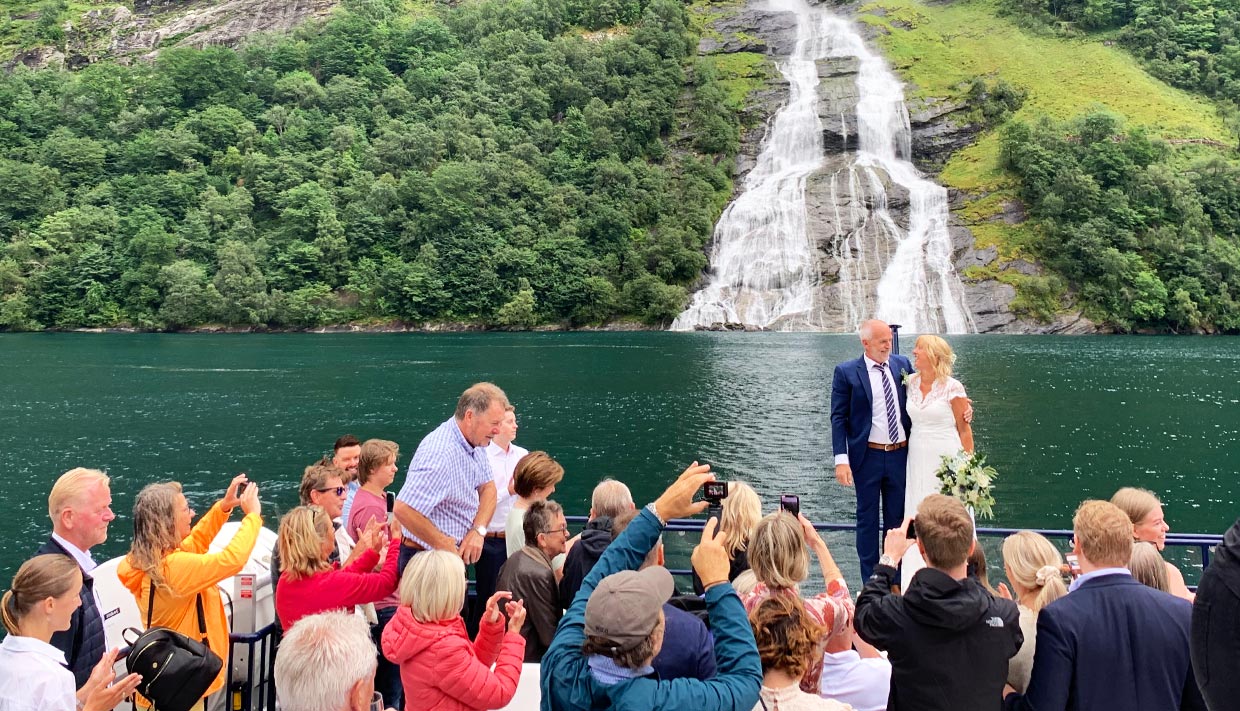 Hva kan være mer spektakulært og mer romantisk enn et bryllup ombord på en moderne komfortabel katamaran omgitt av den dramatiske naturen i Geirangerfjorden? Kontakt oss så hjelper vi deg med å gjøre den spesielle dagen til en ekstraordinær anledning ombord på et av våre velutstyrte charterfartøy.