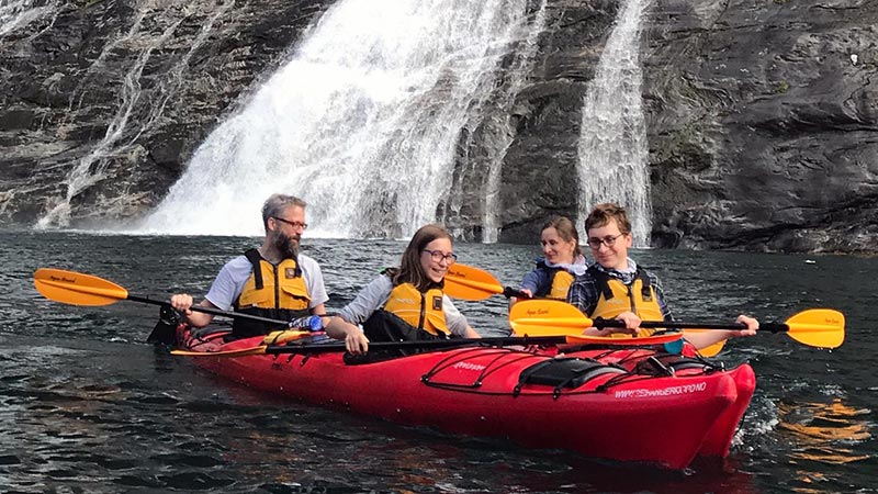 Dette er en guidet kajakktur som lar deg oppleve Geirangerfjorden og dens spektakulære fossefall. Turen starter ved kajakksenteret ved havnen i Homlong og går nedover fjorden til vi kommer midt mellom de to berømte fossene De Syv Søstre og Friaren. Her får du virkelig oppleve fossene på en unik måte.